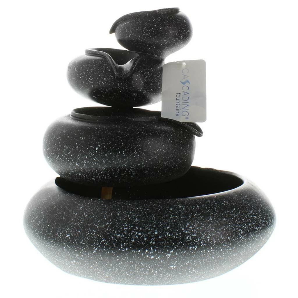 Decorate your space with this tranquil fountain! 4 granite-finished tiers cycle sparkling water from bowl to bowl, creating an enthralling meditation piece. The calming water sounds and compelling design will turn your space into a place of Zen.