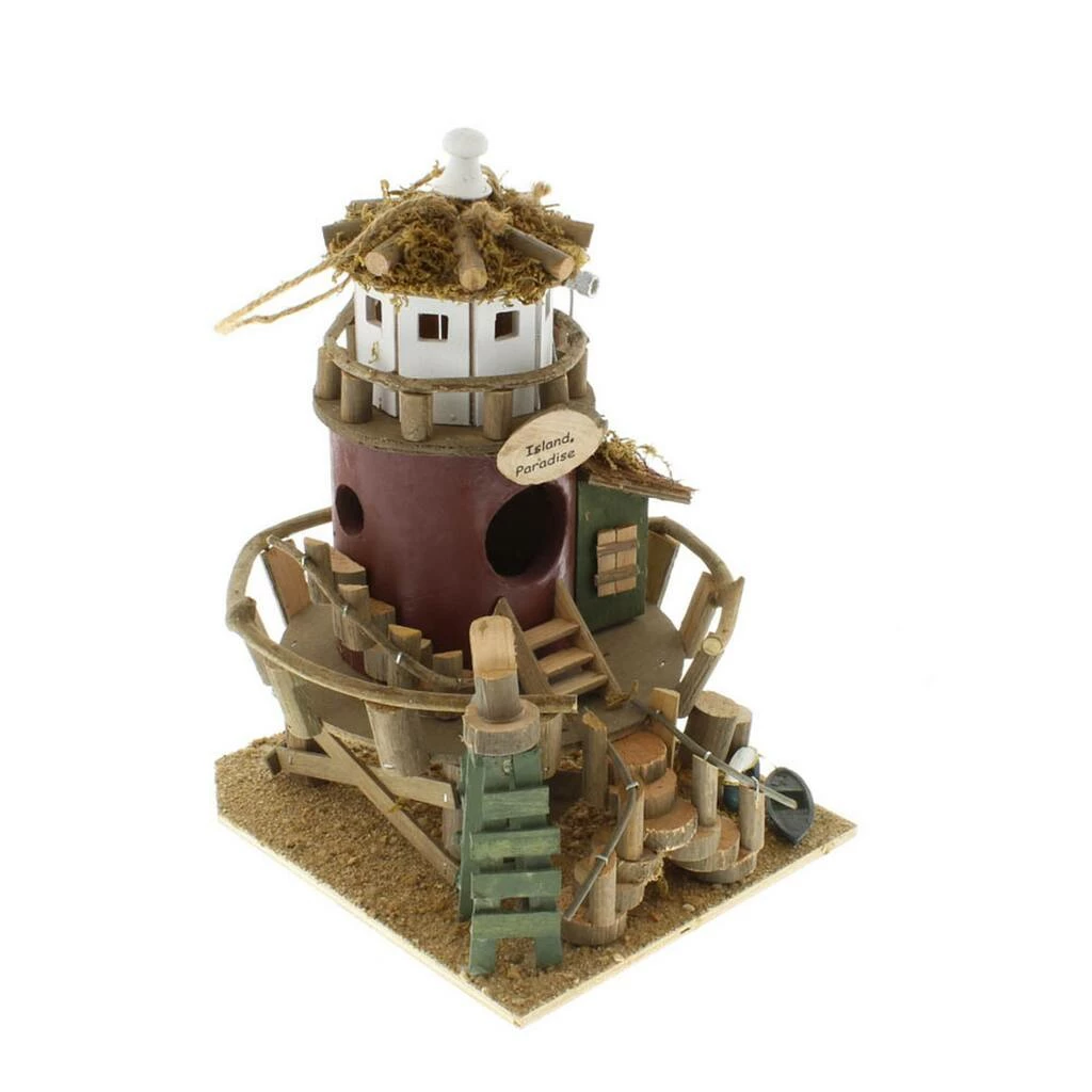 The birdhouse is perfect for a pair of nesting birds! Made from bamboo and plywood to create a sturdy and decorative home for your feathered friends. Cute and clever lifeguard station is an island paradise to welcome garden guests! Either hung from its loop or rested on an elevated surface outside, this birdhouse provides a quirky and cozy home for local birds as well as amusing and enjoyable home dΓ©cor for yourself.