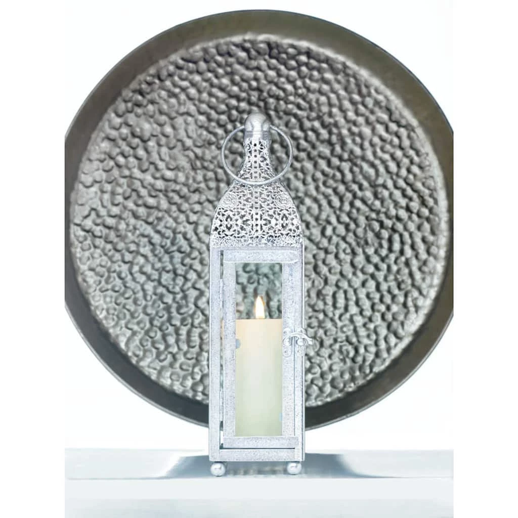 Place a candle or LED of your choice inside the lantern to illuminate your space in a soft and serene glow. Use to create a centerpiece for parties or special events, display on a countertop or coffee table, or light up your outdoor space with flickering light. This lantern is the perfect way to enhance your home’s dΓ©cor! The lantern weighs 1.3 lbs. and measures 3″ x 3″ x 11.75″. This beautifully crafted lantern made of metal and glass is both durable and stunning. Either hanging or stationary, this lantern will cast beautiful light wherever you display it! Removable glass and wood panel allows the easy replacement of your choice of candle or LED to light up the space and create a memorable home dΓ©cor piece. To clean your lighting dΓ©cor dust lightly or wipe with a damp cloth as needed. Highly polished metal highlights the intricately carved top of this stunning candle lantern. With four glass panels, a large top ring for hanging, and a fascinating door latch, this lighting accent will draw the gaze of many admirers.