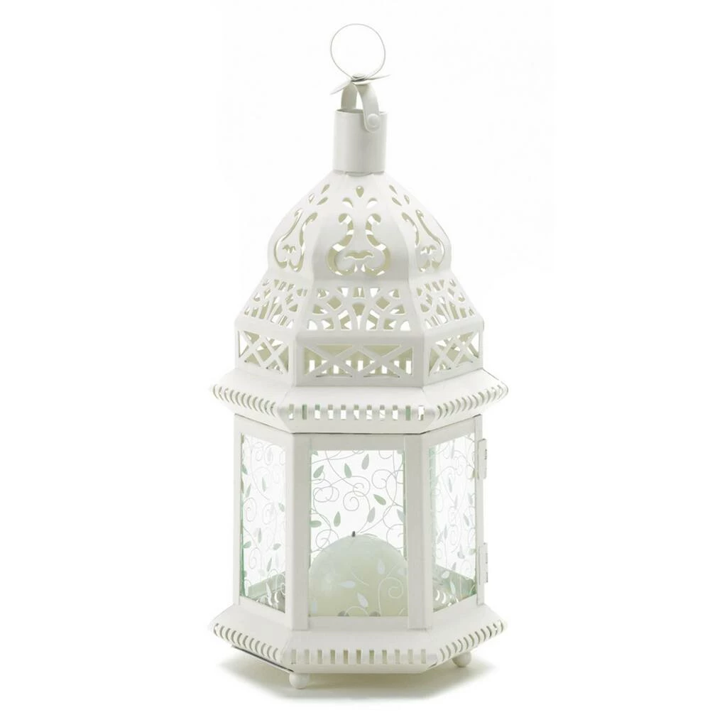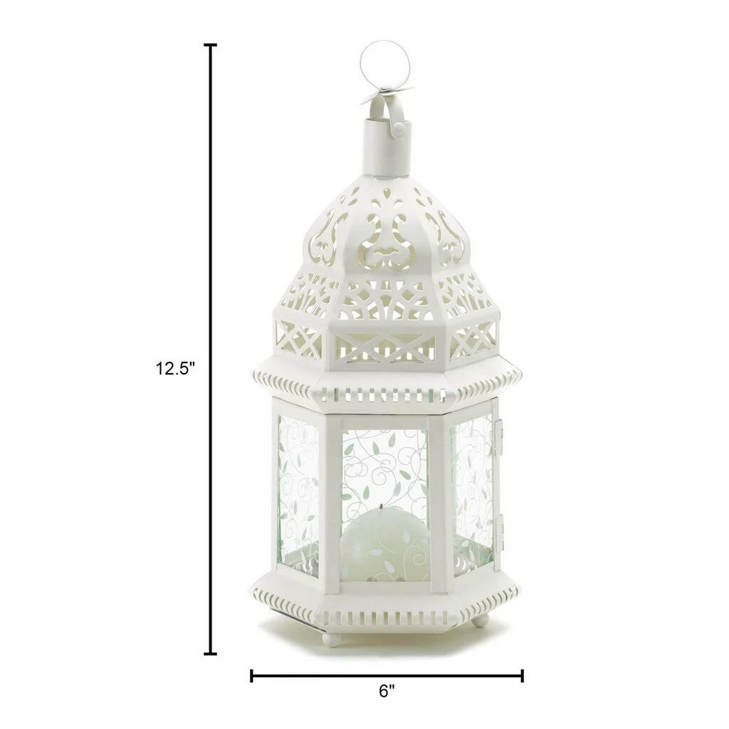 The combination of intricate metal cutouts and ornate glass designs create a gorgeous effect of flickering light that can either set the tone for outdoor events or cast an exquisite glow on your tabletop. Hinged glass panels make it easy to place the candle or LED light of your choice and is ideal for festive parties, weddings, outdoor lighting or as a gift. The lantern weighs 1.2 lbs. and measures 6″ x 5″ x 12″, making it perfect for either hanging outside or as a table centerpiece. Made from durable iron and glass with decorative cutouts to enhance the candle’s flickering light. Either hanging or stationary, this Moroccan style candle lantern casts gorgeous light on any table spread and provides a warm glow on brisk nights. Its decorative metal top and etched glass lend an exotic flair to any home. Wipe with a dry/damp cloth or dust lightly to upkeep its splendid faΓ§ade. This lantern is a beautiful housewarming gift or personal dΓ©cor that lights up any space. Glass panel is easily opened to allow for new candles or LED lights to be placed inside and casts a flickering glow on summer and winter events alike.