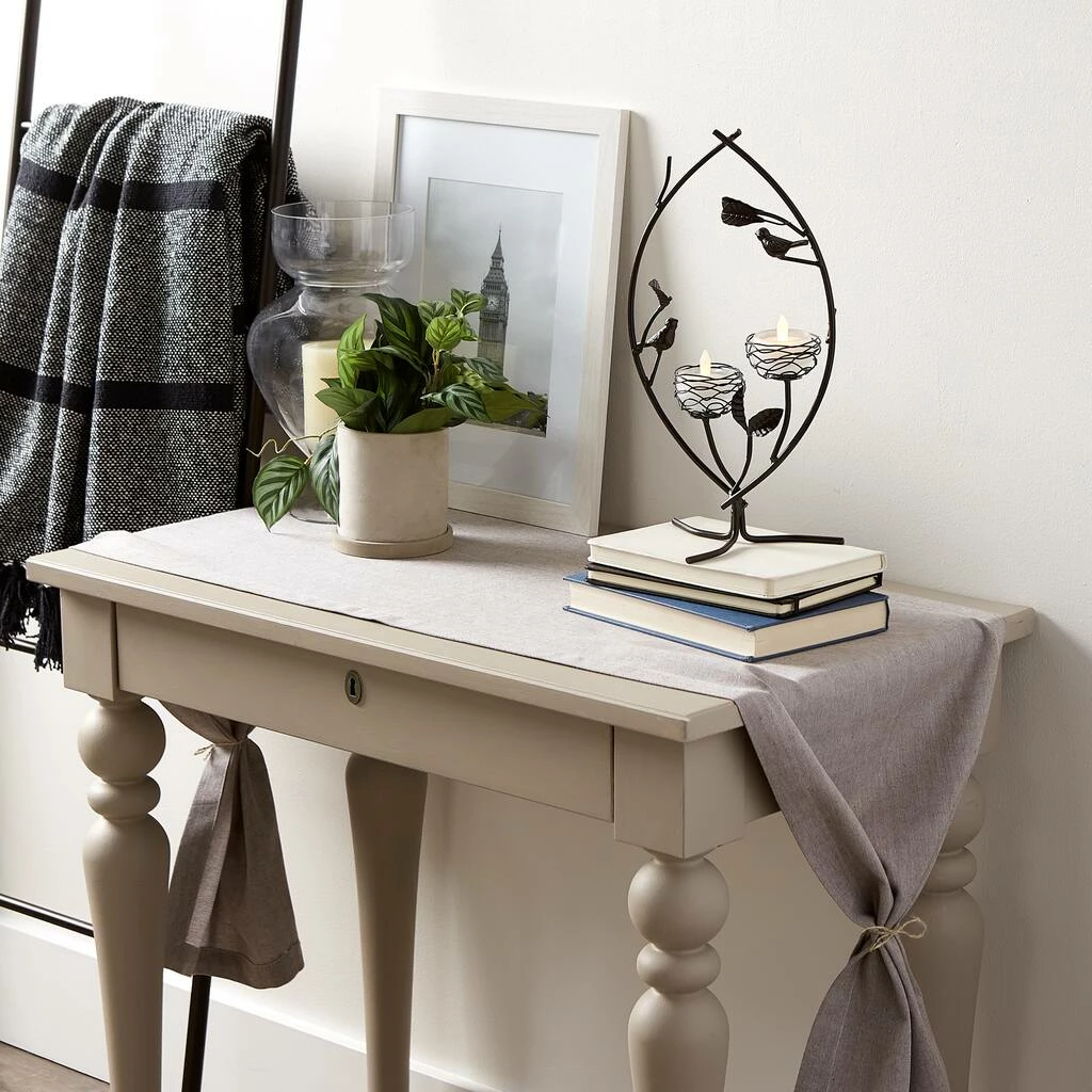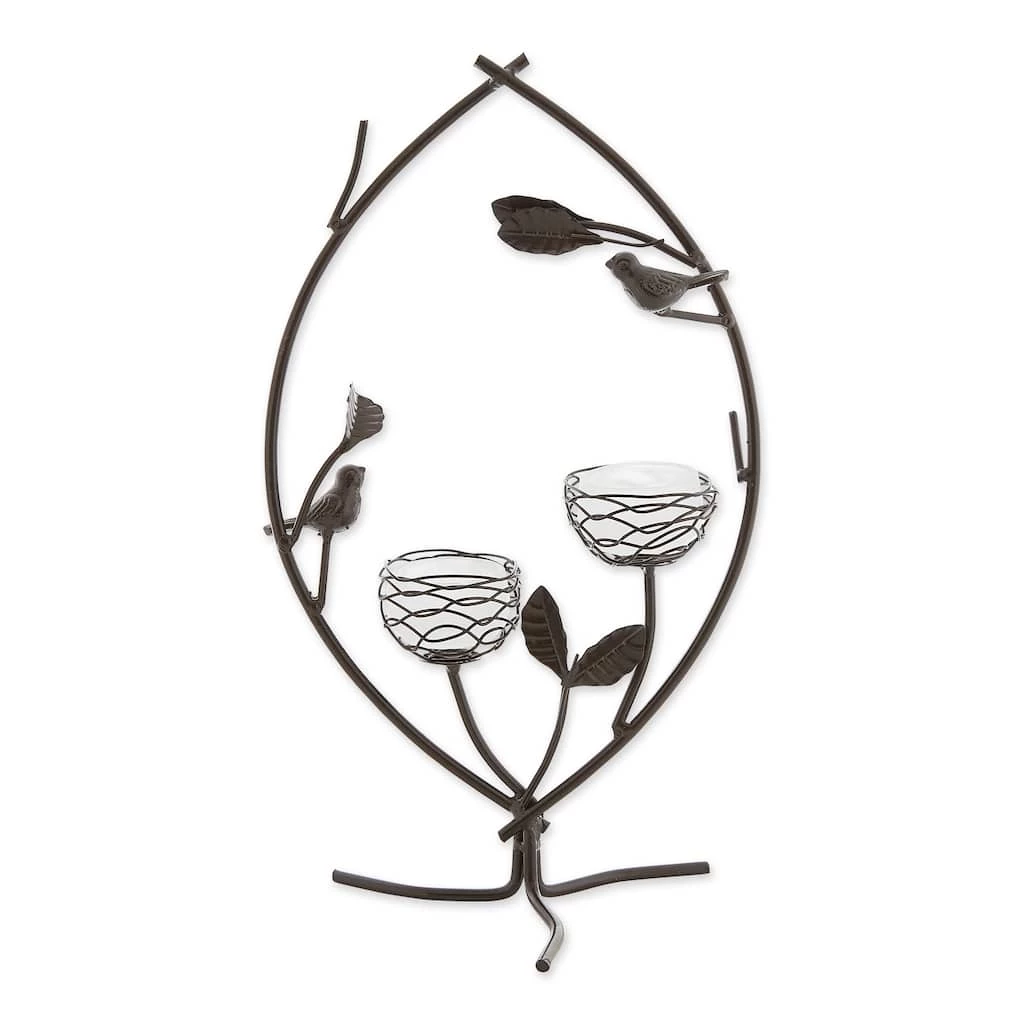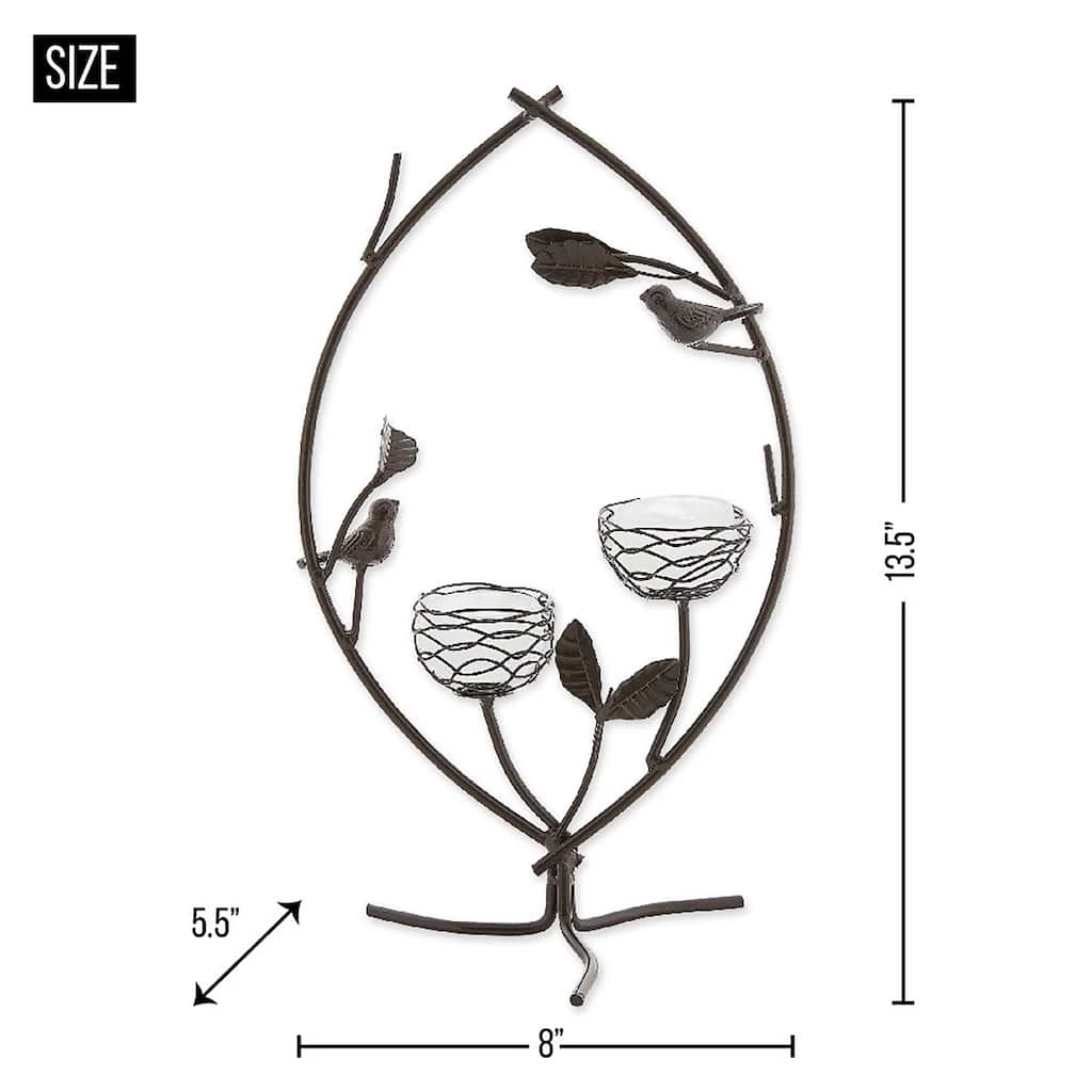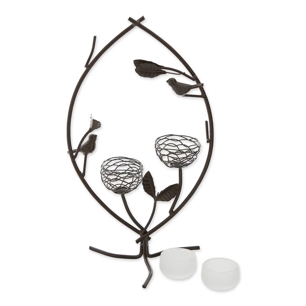 Fill your home with ambient glow and a touch of whimsy with this nature inspired tealight holder! With two votive candle cups accompanied by iron birds, this lighting dΓ©cor will bring light and cheer to your home.