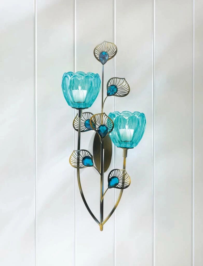 The perfect sized accent for your home’s wall décor! Made from sturdy iron, glass, and plastic to create a uniquely ornate home embellishment that is both beautiful and functional. This stunning peacock inspired wall sconce complete with metallic plumes and turquoise jewels will add colorful touch to any wall space. To clean your lighting décor dust lightly or wipe with a damp cloth as needed. This stunning peacock inspired wall sconce complete with metallic plumes and turquoise jewels will add colorful touch to any wall space.