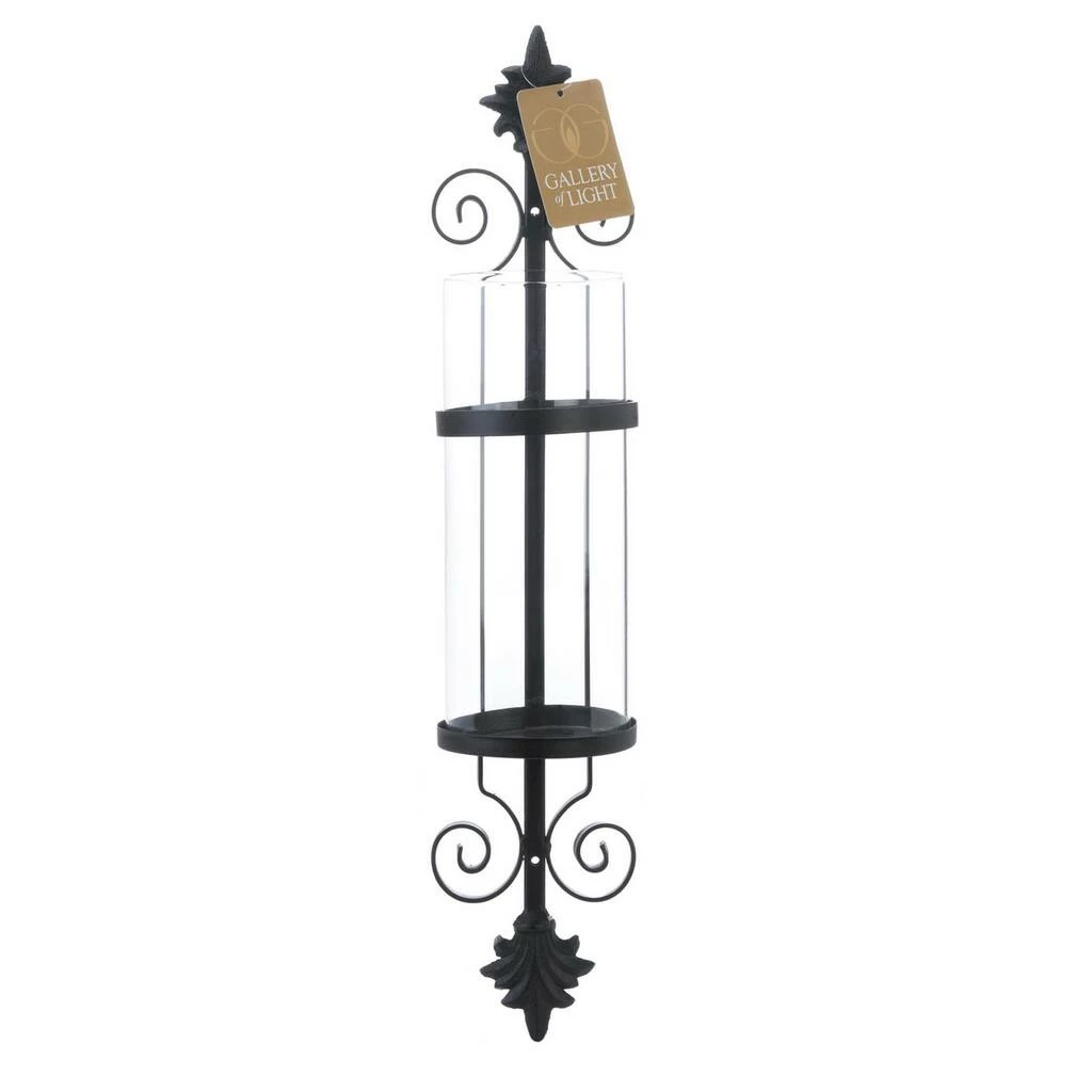This one of a kind candle wall sconce is the perfect addition to light up the hallway, adorn either side of the fireplace, add flickering ambiance to the bedroom, or cast a soft glow on the outdoor patio. This sconce is a must have in any home being both stunning as a sculptural piece and as functional lighting. Easy to screw in and remove, this sconce works with a variety of candles and LED lights making it versatile lighting dΓ©cor. The sconce weighs 1.8 lbs. and measures 4.25″ x 4.5″ x 19.75″. The perfect sized accent for your home’s wall dΓ©cor! Made from sturdy metal, glass, and cast iron to create a uniquely ornate home embellishment that is both beautiful and functional. Ornate matte-black metalwork creates a touch of Tuscan elegance and old world beauty to your home. To clean your lighting dΓ©cor dust lightly or wipe with a damp cloth as needed. Ornate matte-black metalwork creates a touch of Tuscan elegance and old world beauty to your home.