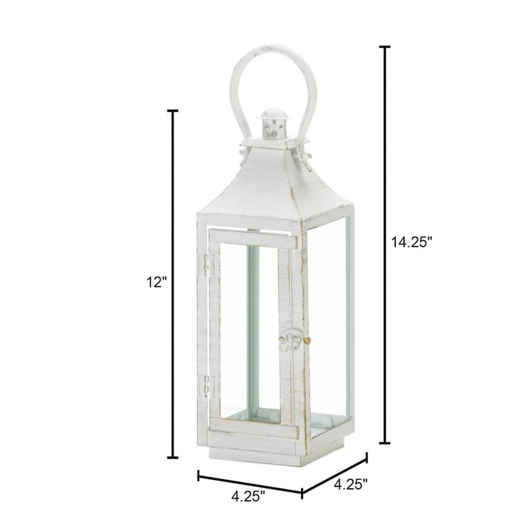 This beautifully crafted lantern made of iron and glass is both durable and stunning. Either hanging or stationary, this lantern will cast beautiful light wherever you display it! Removable glass and wood panel allows the easy replacement of your choice of candle or LED to light up the space and create a memorable home dΓ©cor piece. To clean your lighting dΓ©cor dust lightly or wipe with a damp cloth as needed. The Simply White lantern offers a clean silhouette and bright white finish for a modern update on the traditional lantern design. The decorative lantern is made with an iron frame and glass window panes and suitable for both indoor and outdoor settings. Place a flameless candle inside the lantern and hang it under a covered patio or on top of your console table for a charming candlelight display.