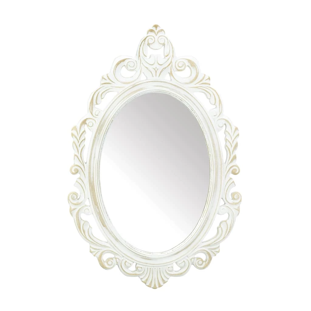 Make your home look instantly more lavish with this decorative carved mirror. Featuring intricate wood detailing around the distressed frame for a vintage farmhouse look. Made from durable MDF wood, this vintage-inspired oval wall mirror is light yet durable and easy to hang. Mirrors are a great way to enhance a room’s personality and fill empty wall space. Use as a unique mirror in a guest bath for an easy and quick remodeled look or make your entryway feel larger with a reflective surface.