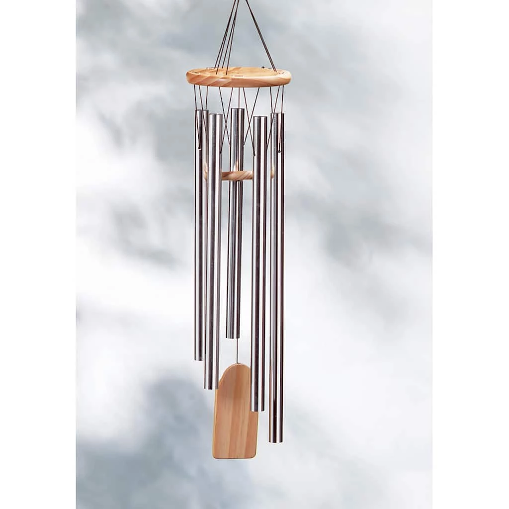 Nature’s own music sounds best when accompanied by the gentle tones of this aluminum and natural pine wind chime. Wind chimes are symbolic of serenity and tranquility and are also thought to bring luck to whoever listens to them.