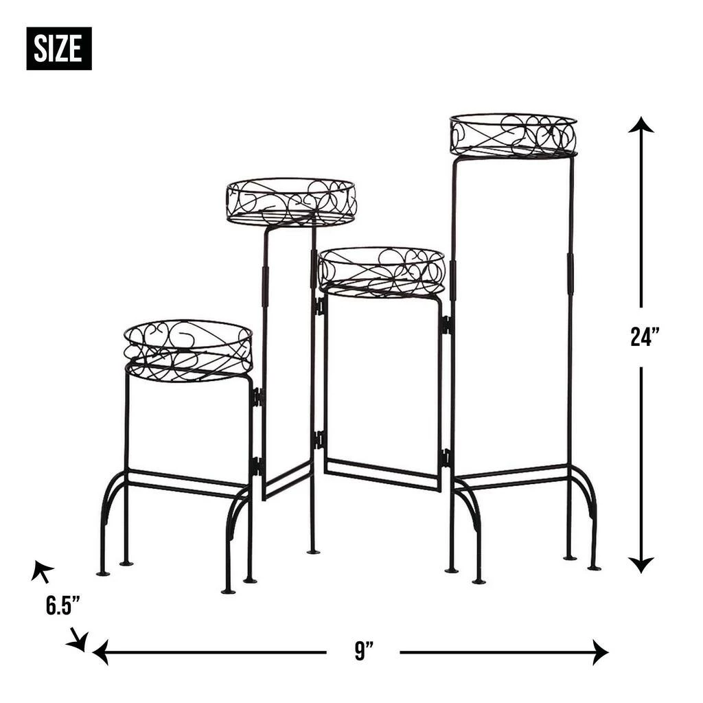 This plant stand is perfect for holding your favorite potted plants or trinkets of any kind, both indoors and outdoors. Place in a sunroom, patio, deck, or porch to add stylish home dΓ©cor and greenery to your space. To clean your plant dΓ©cor, wipe with a damp cloth as needed. Form meets function in this versatile design! This unique screen has four graduated-height panels, each topped with a secure plant shelf; foldable to fit any area.Β