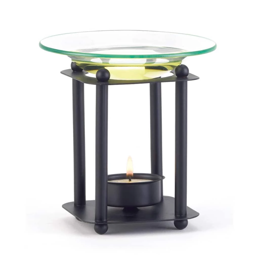The oil warmer is made from glass with a metal stand that is easy to clean and provides gorgeous sculptural details. Design a peaceful and aromatic ambience by warming and diffusing the essential oils of your choice. Simply pour your favorite scented oil into the top and light a candle underneath to create a tranquil and perfumed environment. Clean with soap and water to remove remaining fragrance oils and candle residue before next use. Perfect as a gift to use during meditation, yoga, or to simply make your home smell amazing. It works with practically any essential oil so feel free to create your own unique scents.
