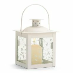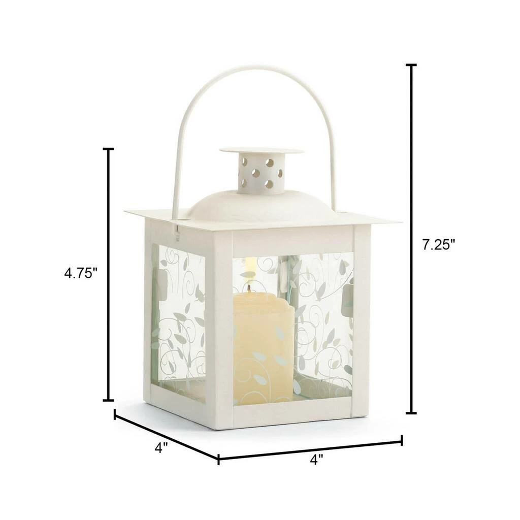 Perfect for adding special sparkle to your next garden party! The lantern weighs 0.6 lbs. and measures 4″ x 4″ x 4.75″. This beautifully crafted lantern made of metal and glass is both durable and stunning. Either hanging or stationary, this lantern will cast beautiful light wherever you display it! Removable glass and wood panel allows the easy replacement of your choice of candle or LED to light up the space and create a memorable home dΓ©cor piece. To clean your lighting dΓ©cor dust lightly or wipe with a damp cloth as needed. Add special glow anywhere with this charmingly petite lantern! The panels’ gracefully curling vine design is beautifully highlighted by the candle’s soft light.