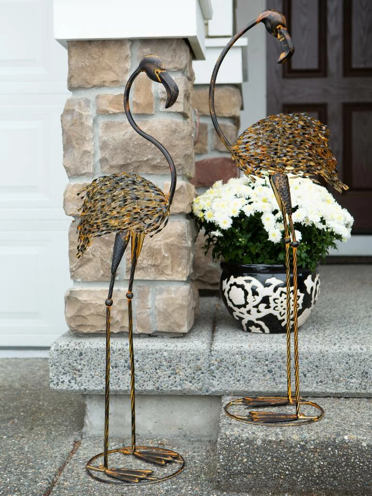 A sweet addition to your front or backyard garden, this statue will make your outdoor space feel instantly more inviting. Place near a pond, fountain, flower or vegetable garden to add a touch of stately dΓ©cor! To clean your dΓ©cor, dust lightly or wipe with a damp cloth as needed. Add some art to your garden or yard with this show-stopping pair of flamingos. This set of cast iron statues will add some whimsy and a dash of wild art to your outdoor living space.