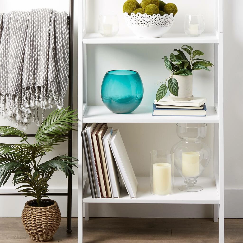 This vase weighs 4.4 lbs. and measures 7.5 inches by 7.5 inches by 7.25 inches. Made of glass to create a stunning home dΓ©cor accent. Accentuate your home’s side tables, bookshelves, mantels, or dressers with this exquisite decorative vase! Fill with flowers or leave as a stand alone dΓ©cor piece to elevate your interior design. To clean your work of art, dust lightly or wipe with damp cloth as needed. Add a splash of aquamarine to your space with this contemporary bowl vase! The mixture of blue and green hued glass and stunning glass shaping is reminiscent of ocean waves and seaside vacations.