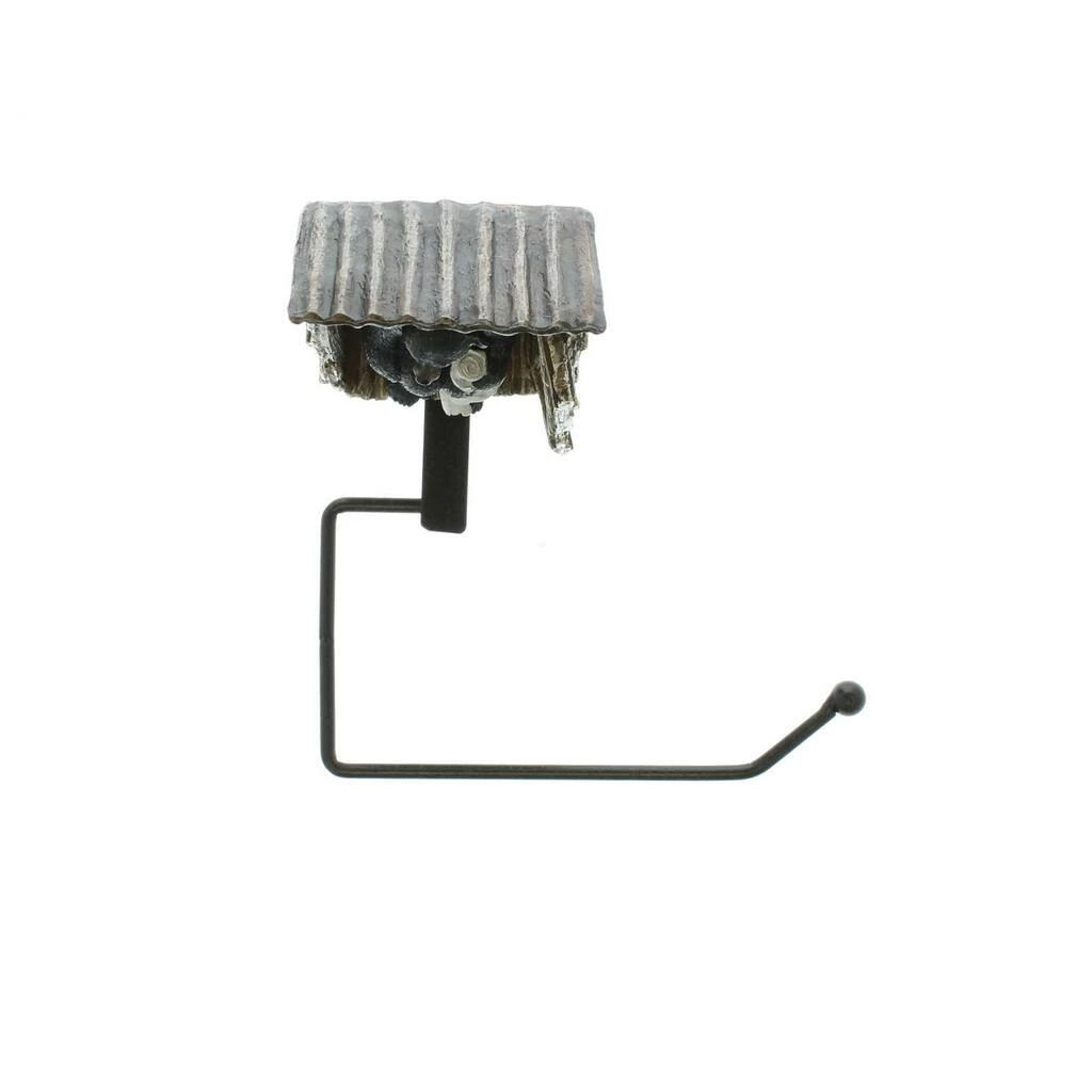 Add a bit of fun to your bathroom with this whimsical toilet paper holder featuring a comical black bear taking a break in his weather-worn outhouse.Β Attach to your wall and let your guests chuckle at this functional and fun dΓ©cor.