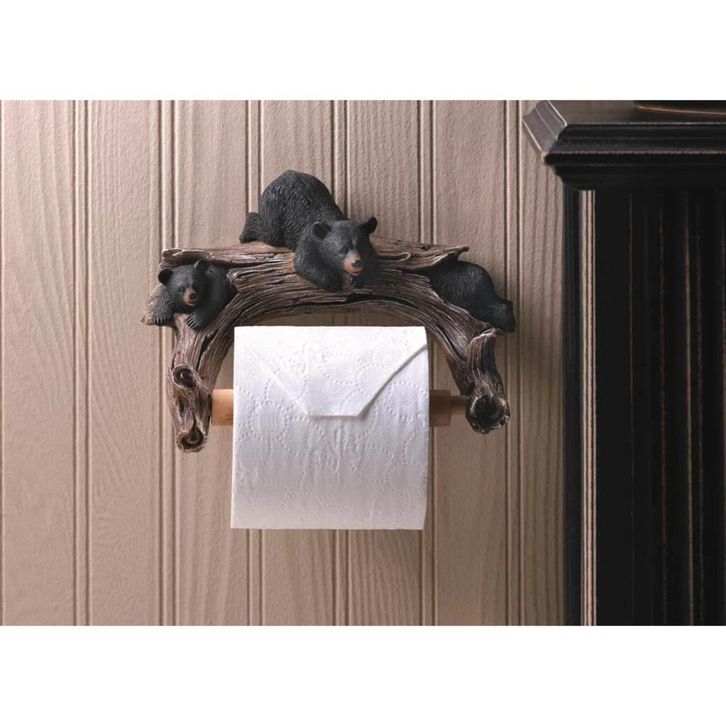 The perfect rustic bathroom accessory, this toilet paper holder featuring three mischievous bears climbing a hollow log will add a touch of whimsy to your facilities! Attach to your wall and let your guests chuckle at this functional and fun dΓ©cor.